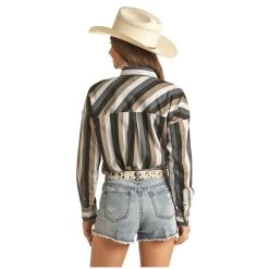 Rock & Roll Cowgirl Ladies Boyfriend Fit Stripe Long Sleeve Shirt B4S3334