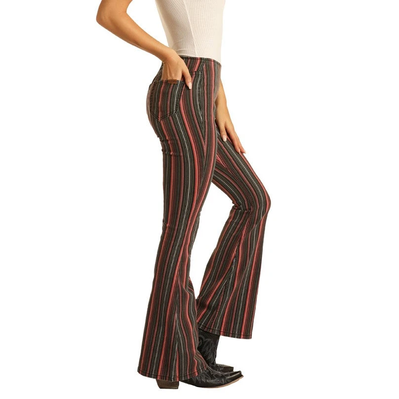 - Multi color stripes flare jeans