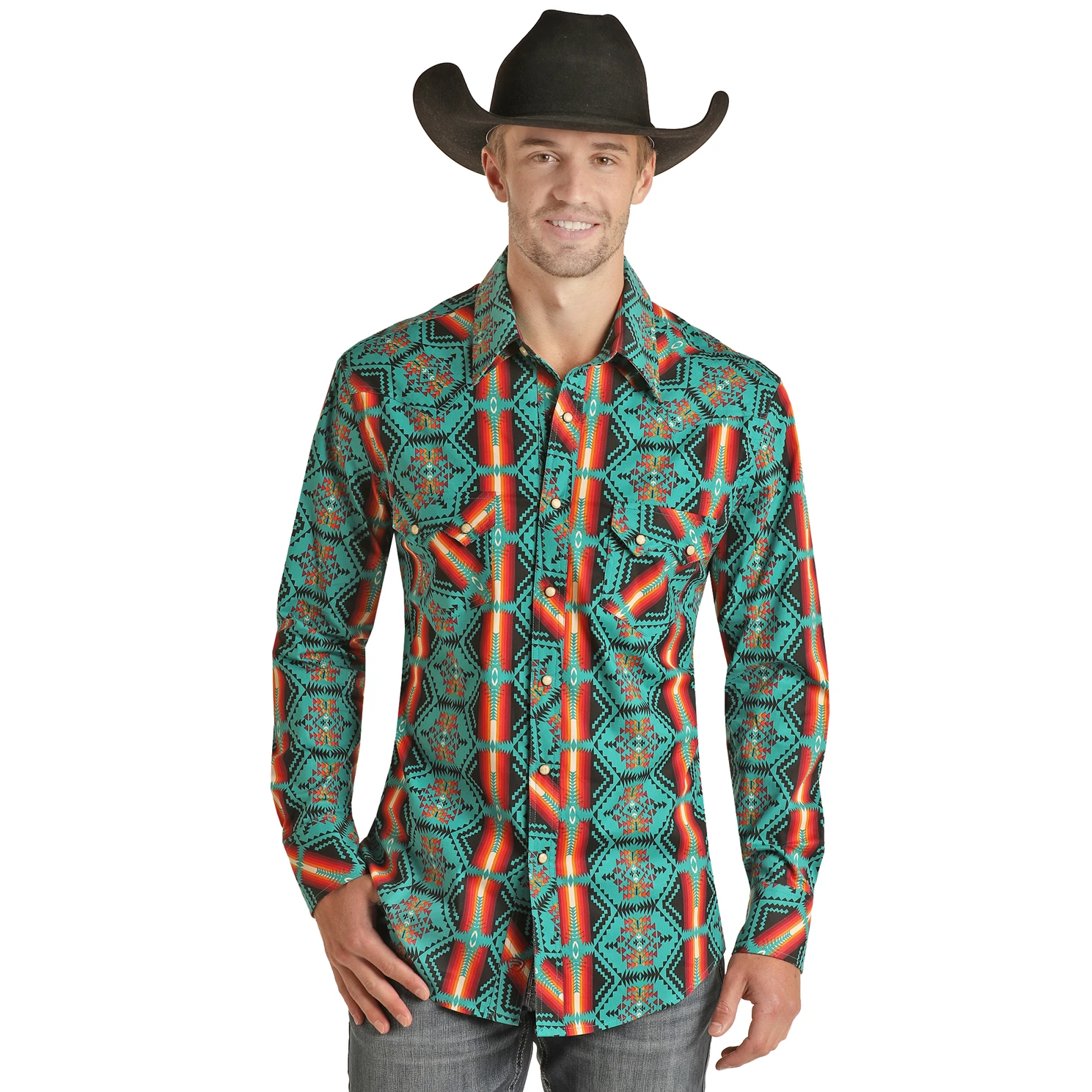 Be the first to review “Rock & Roll® Men’s Teal Aztec Poplin Print Snap Shirt RRMSOSRZ15-81” Cancel reply